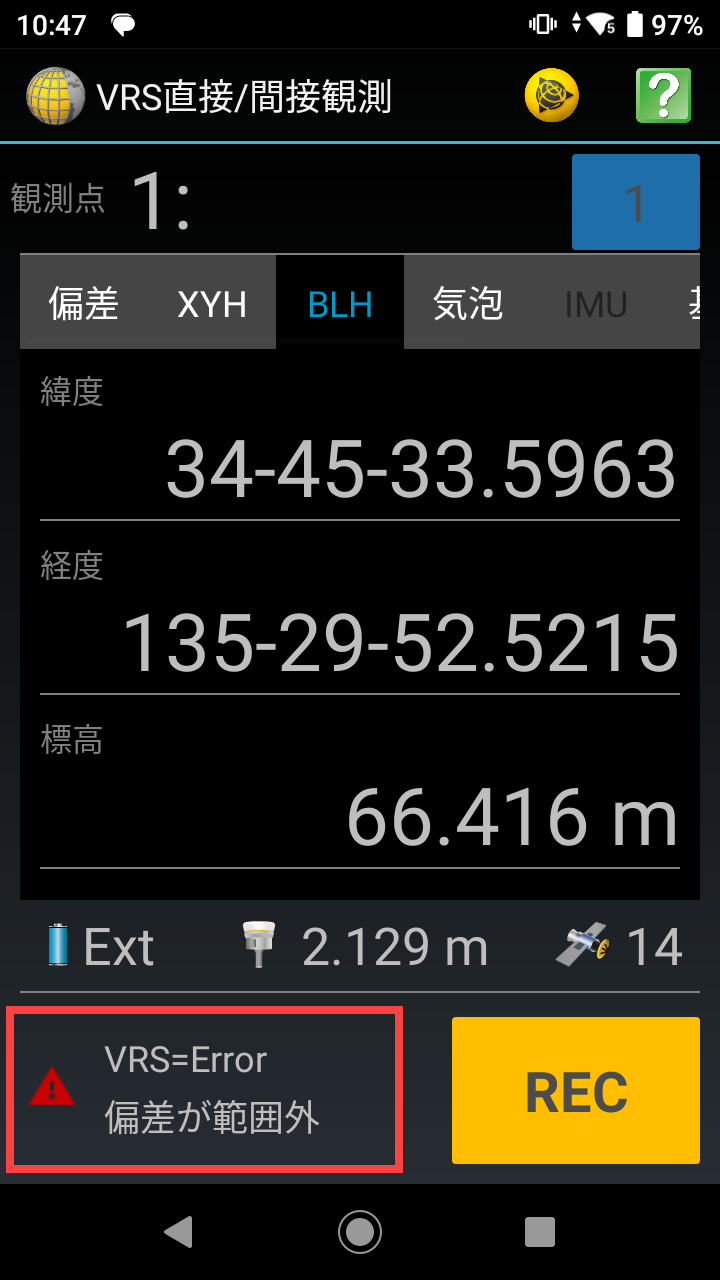 観測画面で、左下に「VRS=Error 偏差が範囲外」と出てRecが押せない時の対処法を
