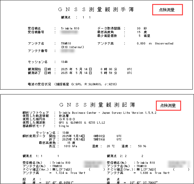 <GNSS観測記簿 「点検測量」の帳票出力手順>
