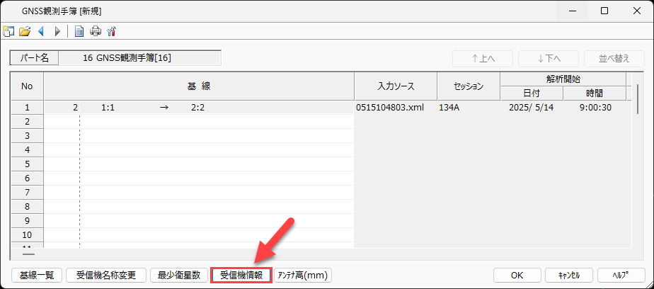 1.GNSS観測記簿>【受信機情報】をクリックします