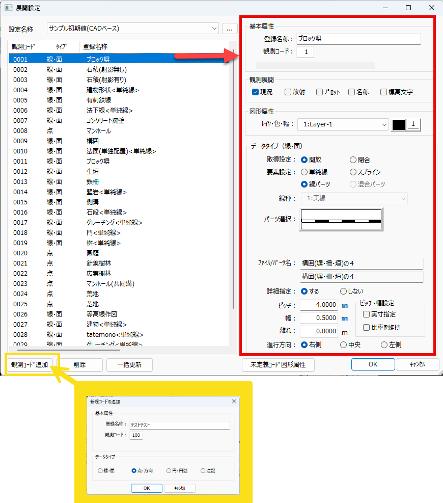 左下「観測コードを追加」をクリックすると、新規でコードと属性を追加することも可能です