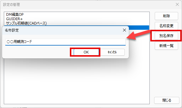 5.「別名保存」をクリックし、任意の名前を付けて「OK」