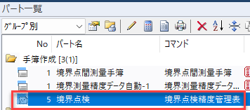5.パート一覧に3.で作成したパート名の「境界点検精度管理表」のパートが自動作成されます。ダブルクリックで起動します