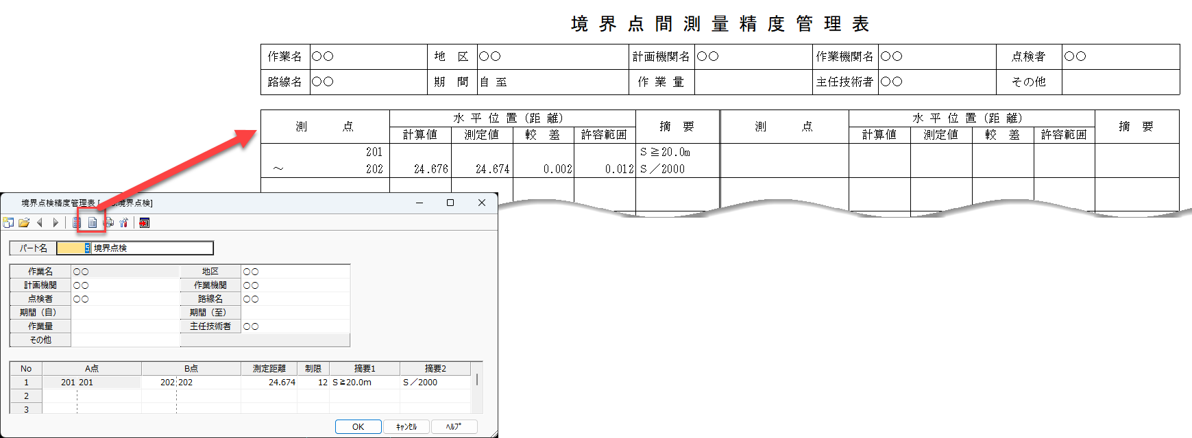 6.【境界点検精度管理表】にて、数値が自動で登録されていることが確認できます
